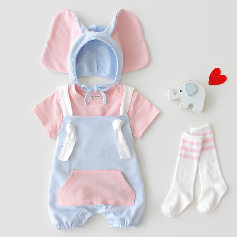 小飛象嬰兒春夏季包屁衣-天藍色