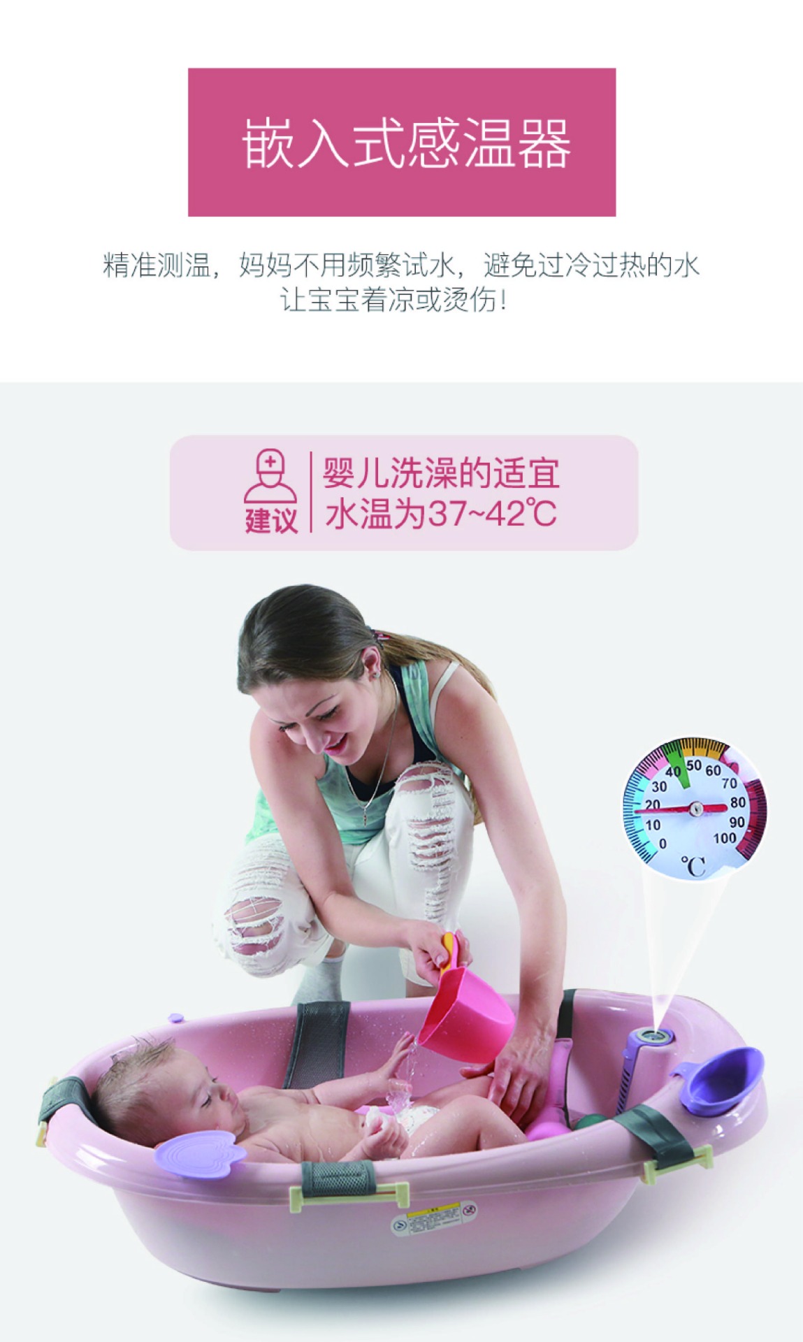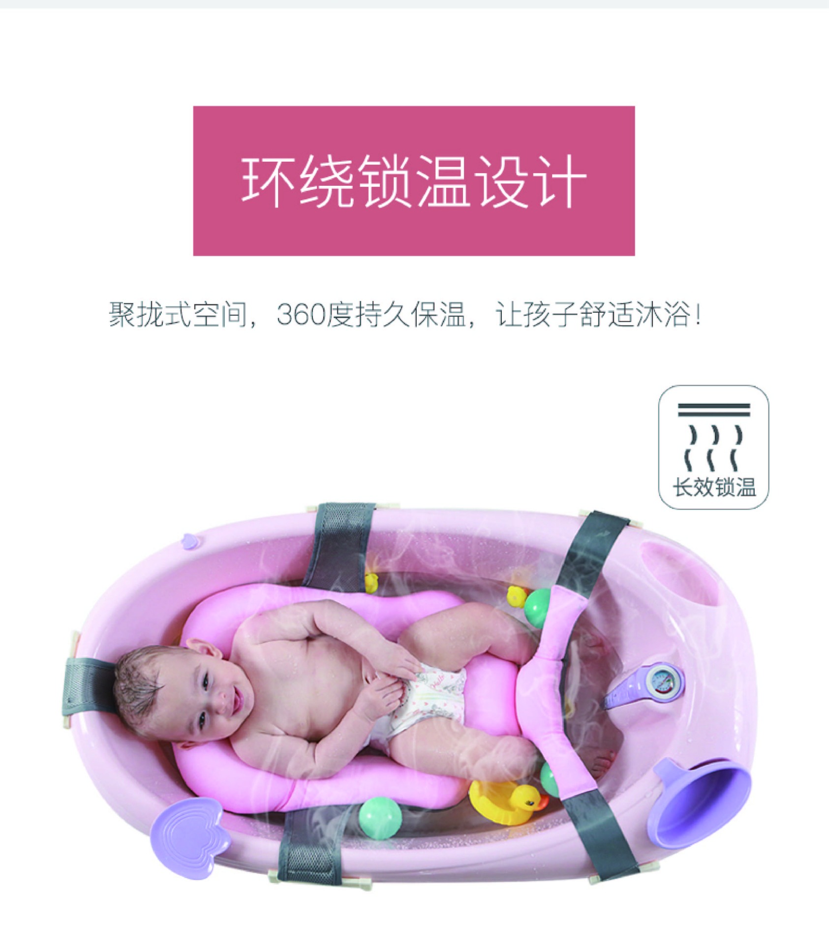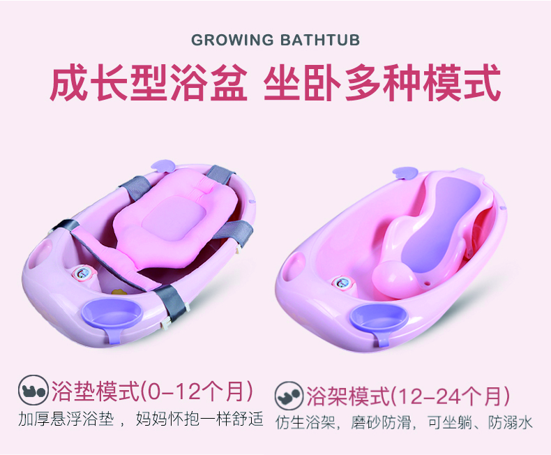特色:0-6歲 / 可坐可躺 / 升級新懸浮浴墊溫度計綠色區塊為寶寶適合水溫
