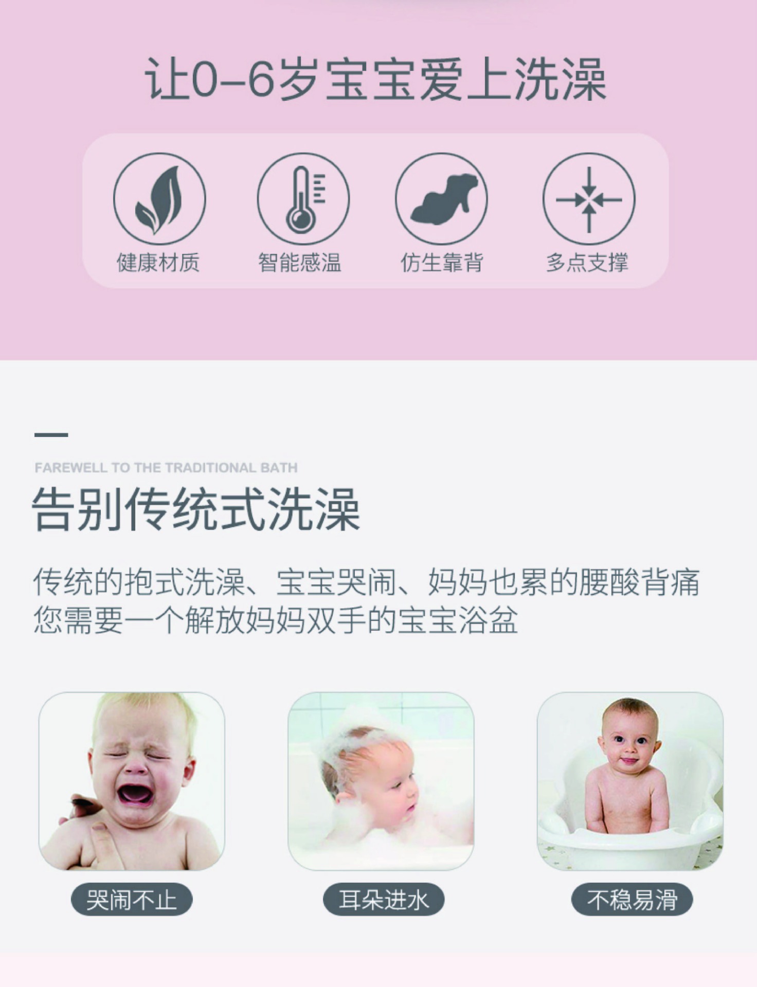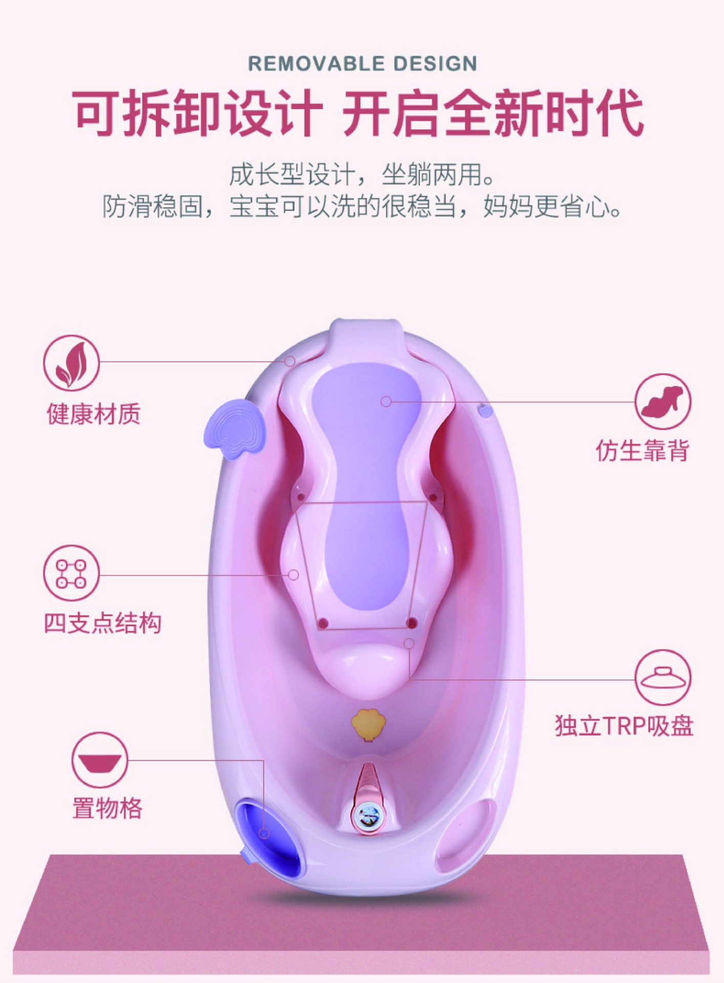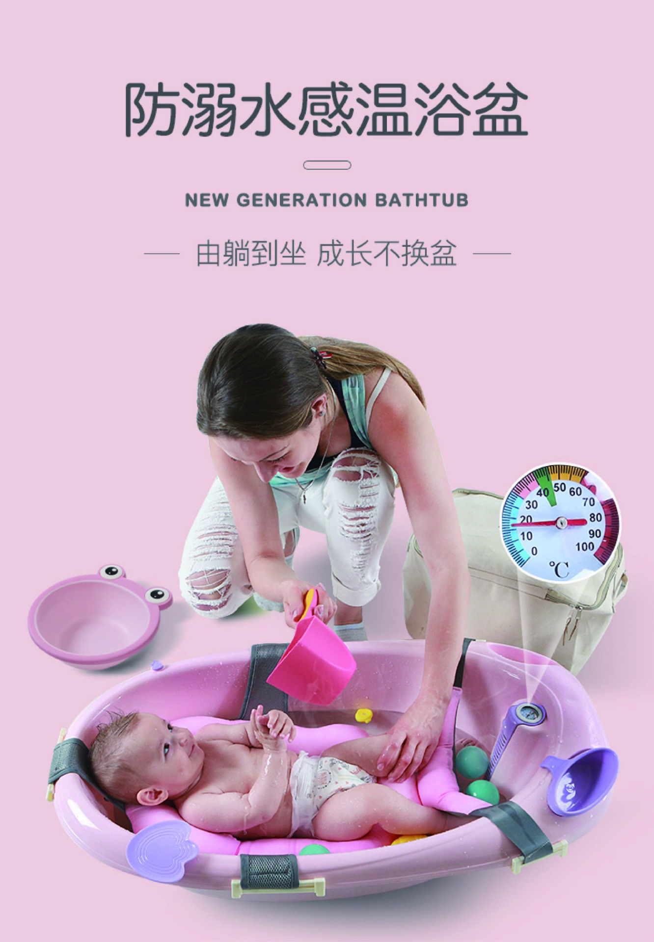 特色:0-6歲 / 可坐可躺 / 升級新懸浮浴墊溫度計綠色區塊為寶寶適合水溫